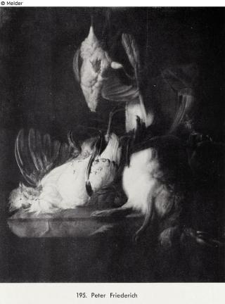 Suchmeldung Jagdstillleben mit Hase, Hahn und Feldhuhn Hersteller/Künstler:in Friederich, Peter Objektart Malerei Material / TechnikÖl ; Leinwand / gemaltLost Art-ID440228