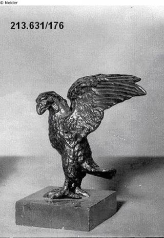 Suchmeldung Adler mit geöffneten Schwingen Hersteller/Künstler:in Unbekannt (Italienisch) Objektart Plastik / Skulptur Material / TechnikMetall (Bronze) ; Marmor rotLost Art-ID301831
