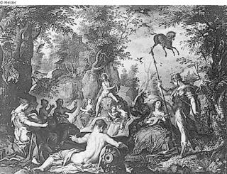 Apollo mit den Musen und Pallas Athene auf dem Parnaß