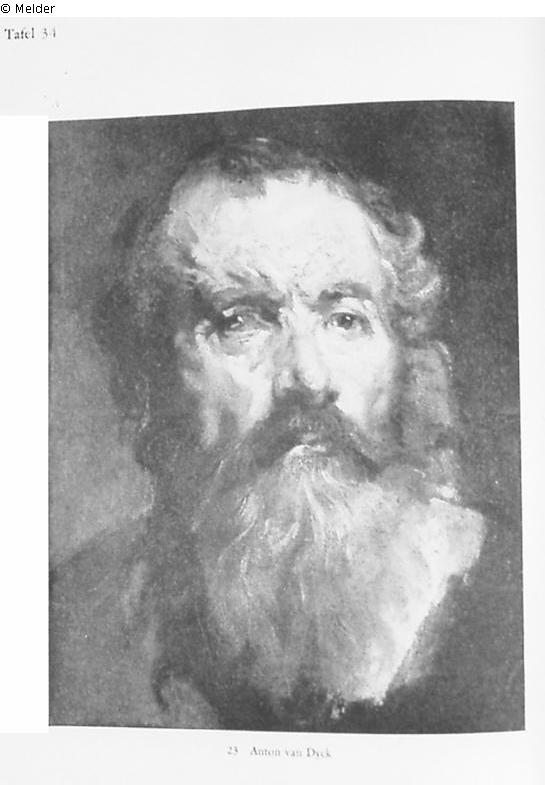 Der bärtige Greis ist von vorn gesehen und blickt nach rechts. Dunkelbrauner Grund. Brauner Rahmen. Gutachten: Ludwig Burchard ("…charakteristisch und eigenhändig…aus der Zeit um 1616…Die Erhaltung ist einwandfrei…"). 7.6.1934.