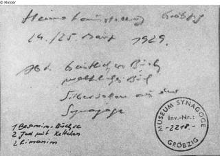 Ursprüngliches Inventar der Synagoge in Gröbzig (Anhalt); vermisst seit der Zeit des Nationalsozialismus.