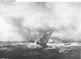 Tafelmalerei: Bild: Meer (Seestück) & mehr als ein Schiff; Meer; See; Gemälde; Bild; Marinemalerei & Schiff