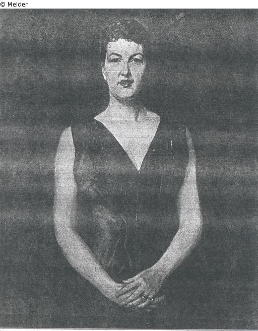 Bildnis der Mrs. Crawley. Halbe Figur im rotem gemustertem Samtkleid, vor grünen Hintergrund. Öl auf Lwd. Bez. rechts u.:W.Trübner.1891.München. 100x82cm