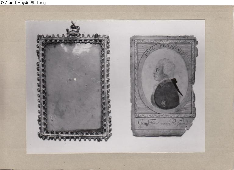 Gerahmtes Brustbildnis des russischen Großfürsten Pawel Petrowitsch (1754-1801) von links in ovalem Feld.