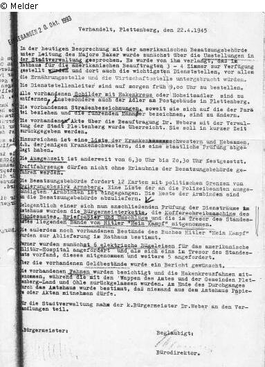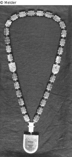 Verlustgeschichte: Die Bürgermeisterkette wurde am 22.4.1945 durch Major Baker der 9th US-Army, XVI. (16), Korps (Generalmajor John B. Anderson) 75. Division (289, 290, 291 Infantryregiment), Fifth Section of the General Staff Official Allied Expeditionary Force, Military Government beschlagnahmt (Brief Rolf G. Wilmink vom 9.5.1997).