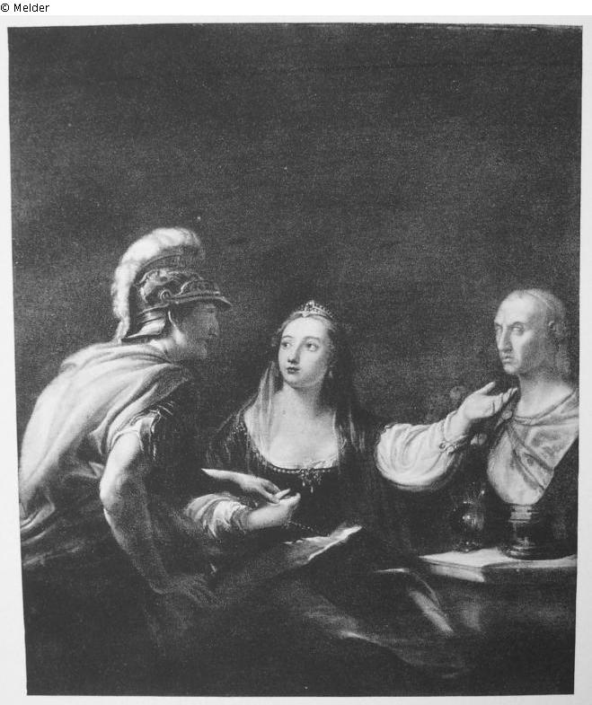 Versteigerung bei Lepke, Berlin, 30. April 1929, Lot 28 mit Abbilldung; Karl Mathiason; Beschlagnahme durch die Dienststelle Mühlmann, Niederlande; 25. Januar 1943 bei Marle & Bignell in Deen Haag, Lot 1 ohne Abbildung, verkauft; wiederholt zur Versteigerung bei Marle & Bignell am 07. März 1944, Lot 5, ohne Abbildung; bei Marle & Bignell mit dem Titel „Cleopatra weist Octavianus auf die Büste Cäsars hin“