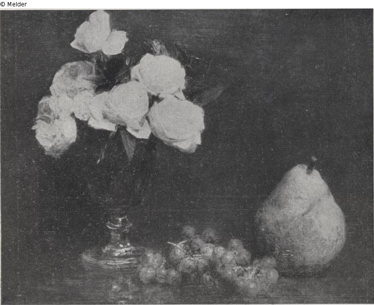 Cristal, roses blanches, raisin et poire / Kristall, weiße Rosen, Trauben und Birnen