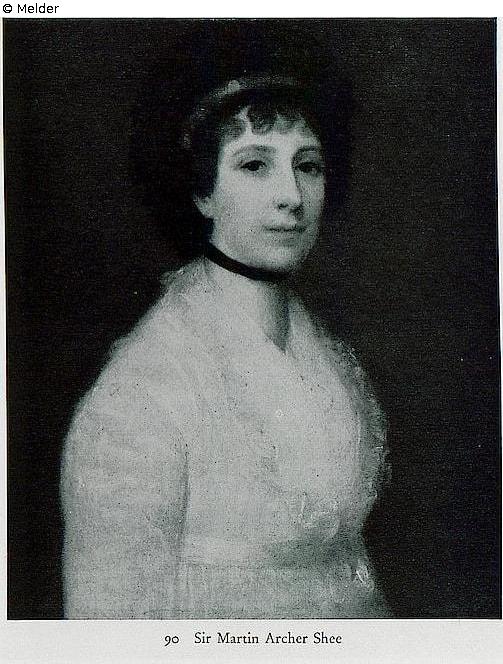 Brustbild einer jungen Dame in weißem Spitzenkleid. Im blonden Lockenhaar ein weißes Band. Leicht nach rechts gewendet, der Blick nach vorn gerichtet.