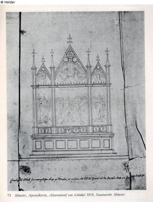 J. F. Schinkel, „Entwurf des Altars der evangelischen Kirche zu Münster, an welchem das Bild des Thomas aus der Garnison-Kirche in Potsdam angebracht ist.“, 1819, Staatsarchiv Münster