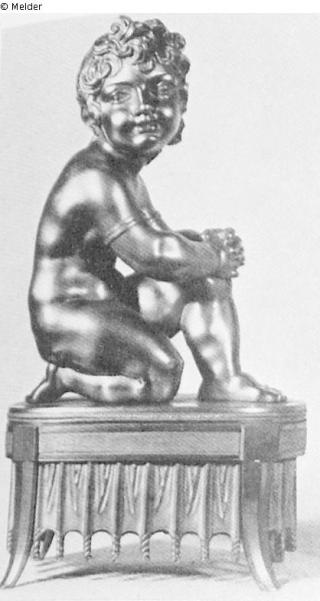 lesender Knabe und kniendes Mädchen, nach Prudhon, Bronze, vergoldet, auf ovalem Sockel. Eventuell identisch mit → Inventarnummer 56 (Simonis - Bronzen); Quelle: Galerie Fischer: Große Kunstauktion in Luzern. Sammlung Frau Hermine Feist, Wannsee u.a. am 20., 21., 23. und 24. Mai 1941. Luzern 1941. Katalognummer 39; Auktionsvertrag zwischen Dr. Hans Feist und Dr. Theodor Fischer vom 28.10.1940, in: Nachlaß Feist, in: Literaturarchiv Marbach; Abrechnung [...] über die verkauften Nummern an der Auktion vom 20./24.05.1941, in: Nachlaß Feist, in: Literaturarchiv Marbach.