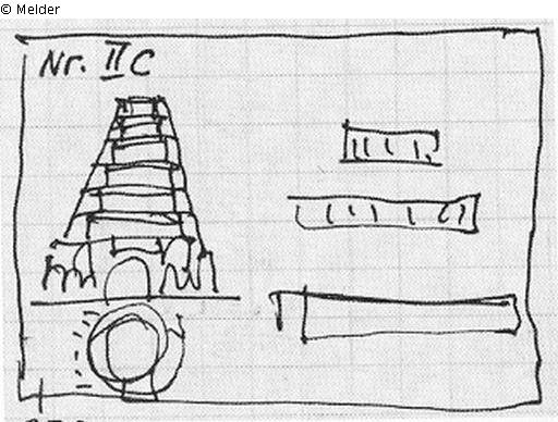 Entwurf eines Spiralturmes - Längsschnitt und Querschnitte (II.C)