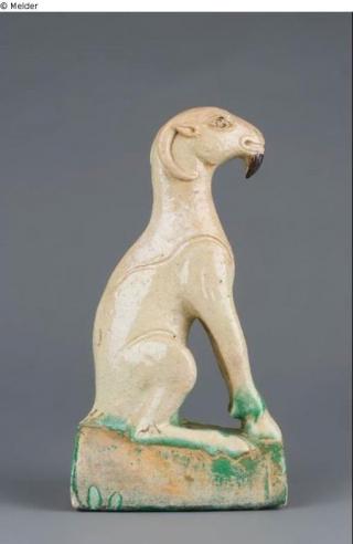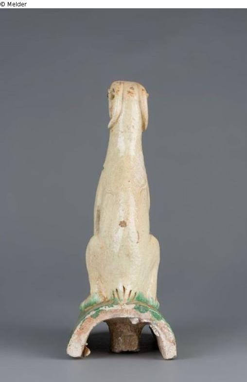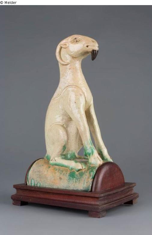 Sammlung Eduard Fuchs, wahrscheinlich erworben nach 1924 und in dessen Besitz bis 1933; 25.10.1933 Beschlagnahmung durch die Gestapo; zwangsweiser Verkauf (Zahlung Reichsfluchtsteuer) durch seine Tochter Gertraud Fuchs: Versteigerung Auktionshaus Rudolph Lepke Berlin, Katalog 2115, S. 37 - am 15.10 und am 16.10.1937 wurde dieser Dachreiter unter Nr. 597 versteigert: „FAYENCE-DACHZIEGEL: Sitzende Ziege; weißlichgelb und grün glasiert. Höhe 29 cm. Ming“.