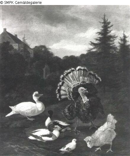 Tafelmalerei: Bild: Geflügel (Hahn, Henne, Huhn, etc.); Geflügel