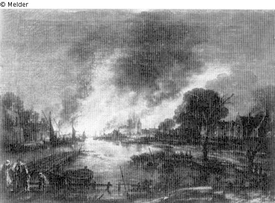 Feuersbrunst in einer holländischen Stadt