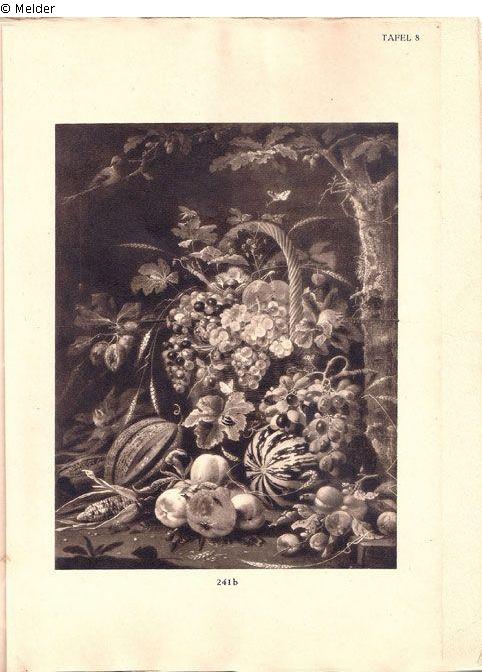 signiert; Korb mit Trauben und verschiedenen Früchten, im Vordergrund Melone, Kürbis, Pfirsiche u. a.; Literatur: Galeriekatalog (3. Auflage) Nr. 2022