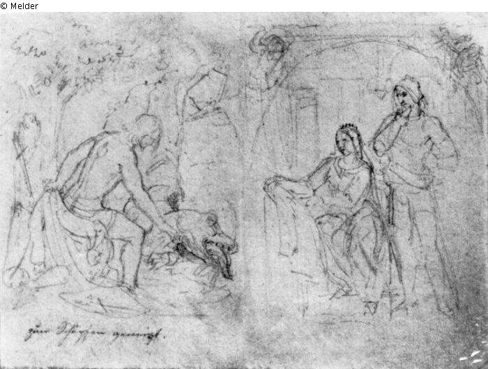 Hagen und Kriemhild (linke Hälfte)