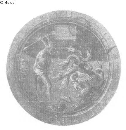Auf grünblau grundiertem Papier; aus: Leben und Taten des Herkules, Folge von 12 Blättern; umrahmt mit 5 Einfassungslinien. Signatur: Unten: AD 1511.