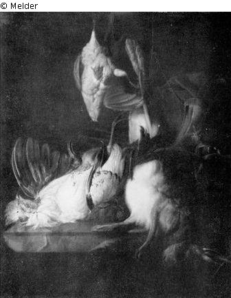 Jagdstillleben mit Hase, Hahn, und Feldhuhn