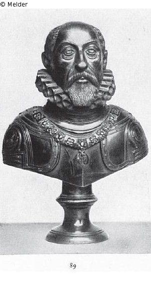 Von einem deutschen Meister in der Art des Antonie Abondio. Die Ähnlichkeit mit den bekannten Darstellungen des Kaisers von Antonio Abondio läßt die Bestimmung dieser Büste auf Kaiser Maximilian II. als durchaus wahrscheinlich erscheinen.