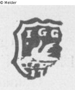 Zinnkanne der Fischer-Innung mit Schraubendeckel, der Ausguß in Form eines Delphinkopfes. Am Bauch vorn bez.: Johann David Naumann / Johann George Naumann / Johann Samuel Naumann / Johann Kaspar Krause / 1746. Gemarkt auf dem Deckel mit Dresdner Stadtmarke und mit linkem Zeichen (114_a.). Gemarkt am Henkel mit Dresdner Stadtmarke und mit rechtem Zeichen (114_b).