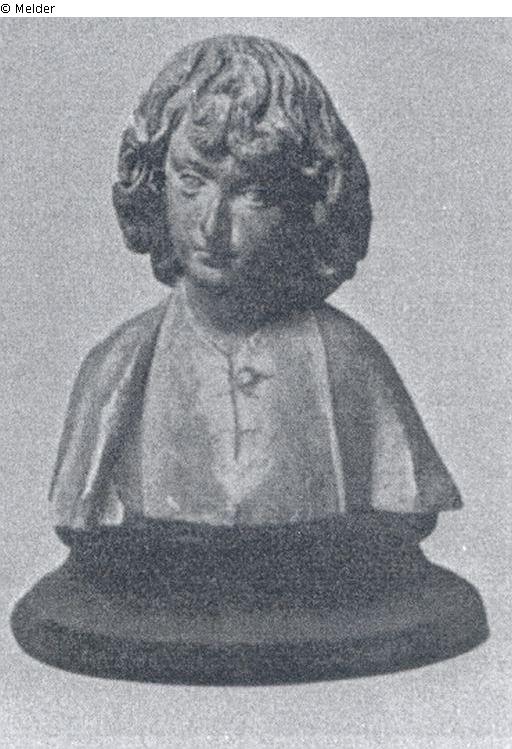 Kleine Büste eines jungen Mannes mit herabfallendem Lockenhaar