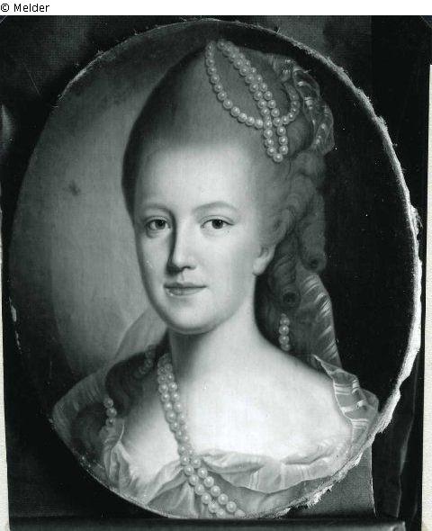 1816 als Bildnis einer Dame im weißen Kleid mit Perlen im Gemäldevorrat des Berliner Schlosses; 1824 zusammen mit anderen Gemälden in die ehemalige Kapelle der Kurfürstin Luise Henriette; 1846 in die Bibliothek der Königin Elisabeth im Schloss Charlottenburg; Verbleib unbekannt