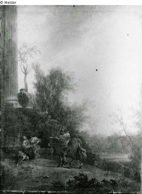 Landschaft mit Bauern und Pferd