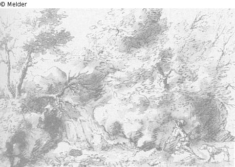 gezeichnet (Feder) ; laviert