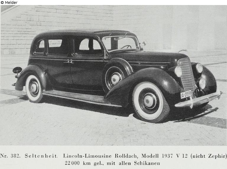 Auto mit Rolldach, 7-sitzig, mit allen Schikanen; Modell 1937 V 12 (kein Zephirmodell), 22.000 km gelaufen (1938)