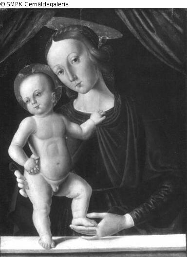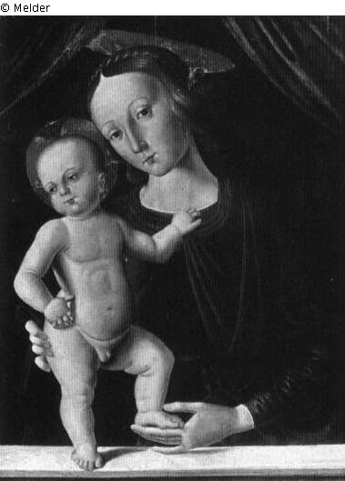 Tafelmalerei: Bild: Maria stehend (oder halbfigurig), das Christuskind steht vor ihr; Madonna; Maria (Jungfrau); stehen; Christuskind