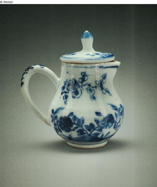 Keramik (Porzellan) ; Unterglasurfarbe kobaltblau / Emaillemalerei
