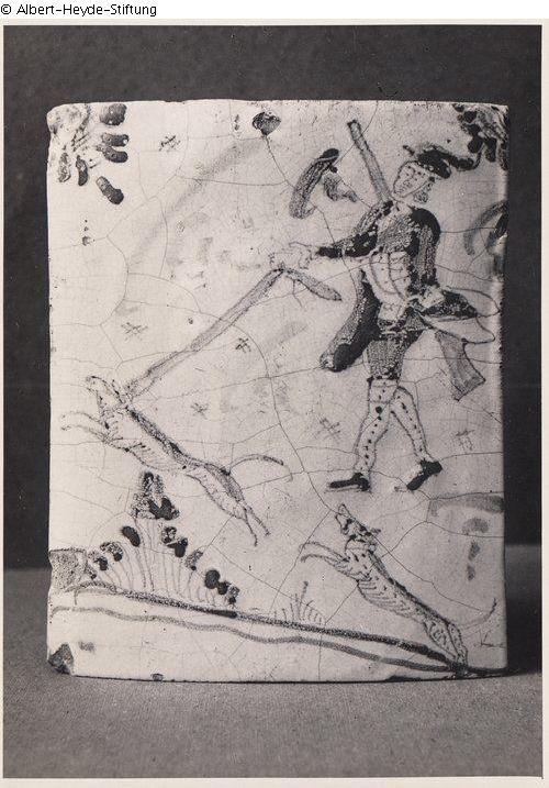 Suchmeldung | Einzelobjekt Ofenkachel mit Jagdszene Lost Art-ID614012 Vorherige Weiter Hersteller/Künstler:in Unbekannt TitelOfenkachel mit Jagdszene Datierung1751/1800 (um)ObjektartBauplastikObjektgruppePlastik / SkulpturMaterial / TechnikKeramik ; Glasur (Fayence)Inventarnummer657Beschreibung Konvexe Ofenkachel mit Darstellung eines Jägers mit zwei Hunden der Meute, weißgrundig farbig bemalt. Weiterlesen Weniger anzeigen Provenienz Ehemals Uckermärkisches Museum, Prenzlau. Vermutlich Kriegsverlust 1945. Weiterlesen Weniger anzeigen Veröffentlicht seit19.06.2023 Kontakt Dominikanerkloster Prenzlau Kulturhistorisches Museum Uckerwiek 813 17291 Prenzlau Deutschland E-Mailmuseum@dominikanerkloster-prenzlau.deHomepagehttp://www.dominikanerkloster-prenzlau.de Ansprechpartner:in Dr. Katrin FreyTel+49 (0) 3984 75 266E-Mailfrey.museum@dominikanerkloster-prenzlau.de