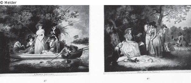 Ein Paar Gegenstücke: Vornehme Gesellschaften im Boot und am Ufer picknickend. Gestochen von W.Ward u. G.Keating. London, J. R. Smith. Gr.-Qu.-Folio.