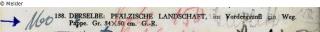 Sammlung Eduard Fuchs bis 1933; 25.10.1933 Beschlagnahmung durch die Gestapo; Versteigerung Auktionshaus Rudolph Lepke Katalog 2114, 16. und 17.06.1937, Nr. 138: „Pfälzische Landschaft, im Vordergrund ein Weg. Pappe. Gr[öße] 34 x 50cm, G.[old] – R.[ahmen]"; ersteigert von Hildebrand Gurlitt für 160,- M (Schätzpreis: 150,- M); Verbleib unbekannt