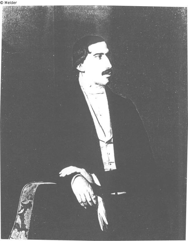 Gerahmt. Adam Löwenberg, der Großvater des Anspruchstellers, in schwarzem Anzug mit weißer Weste. Unten links: Waldmüller 1850