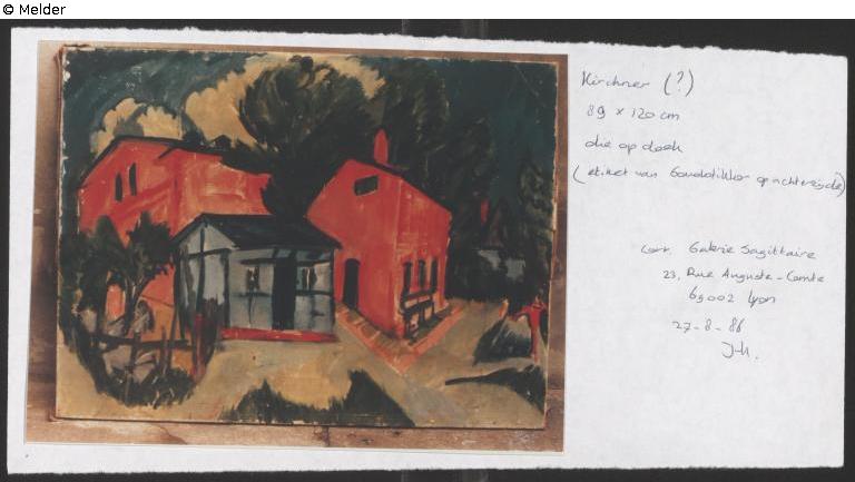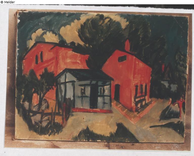 um 1913-o.D. Ernst Ludwig Kirchner; Sammlung Hugo Simon (1880-1950); Paris (maschinenschriftl. Liste Moskau 1937 ?); 1938, Juli ausgestellt in London "Red Houses" Hugo Simon; 1938, Nov. ausgestellt in Paris; 1940, zurückgelassen in der Wohnung von Hugo Simon in der Rue Grenelle 102, Paris; zuletzt auf dem Kunstmarkt wieder aufgetaucht