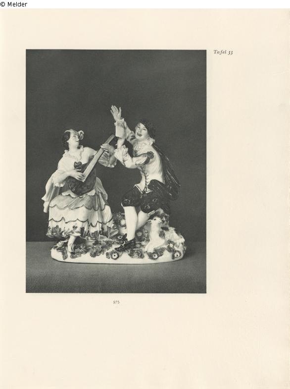 Schäfergruppe: Lautespielende Dame und singender Skaramuz