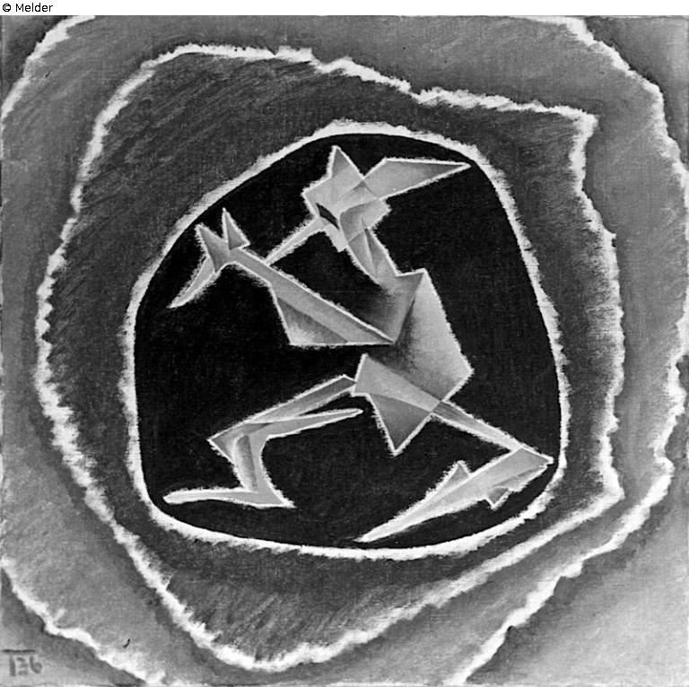 Figur mit spitzer Nase in Kreisen - Monogrammiert und datiert unten links: T36