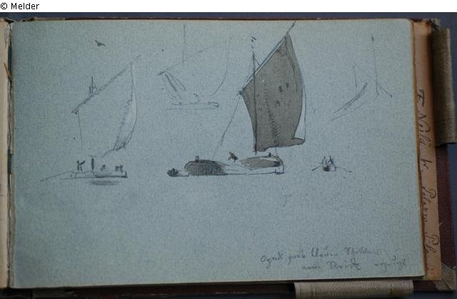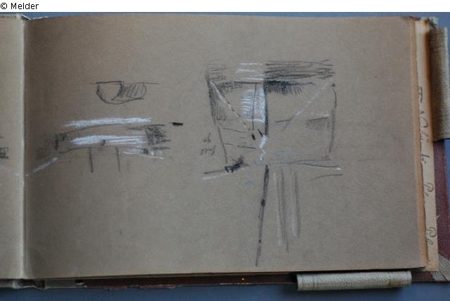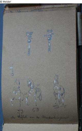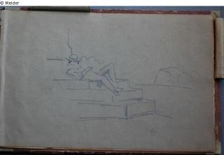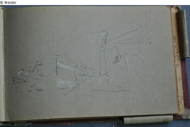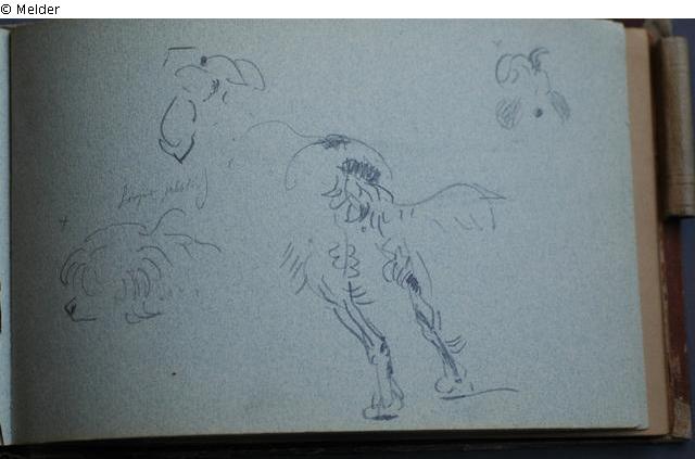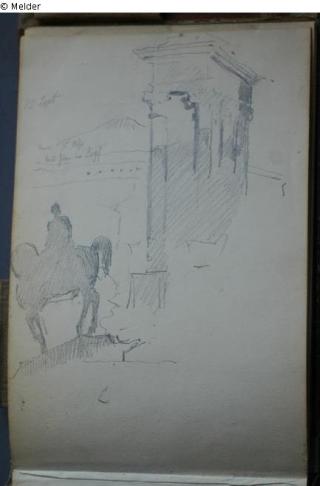 Motive überwiegend aus Rom und Umgebung; Skizzenbuch ohne Einband mit Landschaftszeichnungen, Architekturansichten, Tier- und Menschendarstellungen.