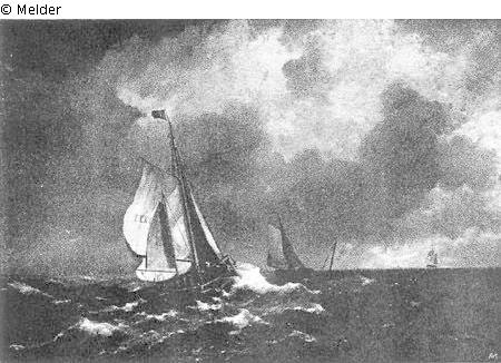 signiert und datiert; Fischerboot als Staffage, auf dem Segel eine Inschrift: TEXEL (Watteninsel Holland)