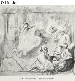 Tanz der Morgiane. Links unten bezeichnet: M. Slevogt 1900. Rechts Sammlerstempel G. E.