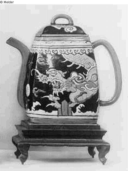 Suchmeldung | Einzelobjekt Vierkantige Teekanne Lost Art-ID307109 Vorherige Weiter Hersteller/Künstler:in Unbekannt (Chinesisch) TitelVierkantige TeekanneObjektartGefäßObjektgruppeKunsthandwerk / -gewerbeMaterial / TechnikKeramik (Ton) ; Glasur / gebrannt Höhe 19,00 cm Inventarnummer389Beschreibung Vierkantige Teekanne, schwarzgebranntes Steingut, schwarz-blau glasiert, mit Malerei in bunten Farben über der Glasur Weiterlesen Weniger anzeigen Provenienz bis 1942 Sammlung Max Rüdenberg, Hannover; am 1. Juli 1942 konfisziert und im Januar 1943 versteigert bei Urban in Hannover Weiterlesen Weniger anzeigen Veröffentlicht seit2005 Kontakt Kontaktanfragen richten Sie bitte an das Deutsche Zentrum Kulturgutverluste.
