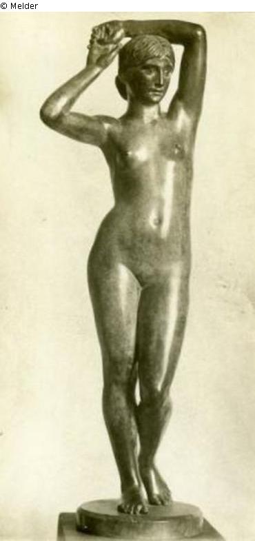 Figur zunächst als kleine Bronze (1885) ausgeführt, dann in Lebensgröße in Marmor