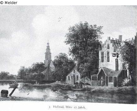 In Architektur und Laub vorherrschend braune und gelbliche Harmonien, grünlich variiert. Der Bauer im Kahne links in Rot. Der rote Wimpel am Maste des Segelbootes hebt sich vom Grau des Kirchturmes ab. Im graublauen Himmel mit seinen weißlichen Wolken scheint hie und da der warme Malgrund durch.