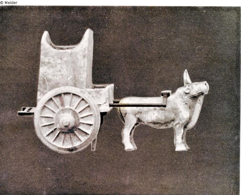 Zugstier mit zweiräderigem Wagen