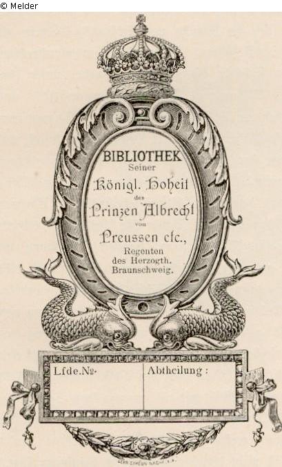 Bibliothek Ihrer Königlichen Hoheit, der Frau Prinzessin Albrecht von Preußen, Regent von Braunschweig / Владельческая запись на экслибрисе принцессы: Bibliothek Ihrer Königlichen Hoheit, der Frau Prinzessin Albrecht von Preußen и т.д.