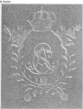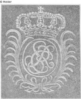 Buchaufdruck mit Monogramm der Tochter des Markgrafen Albrecht, eines Bruders des Königs Friedrichs I., Anna-Sophie-Charlotte von Brandenburg, (1706-1751) / Тиснение с монограммой дочери Маркграфа Альбрехта, Анны-Софии-Шарлотты Бранденбургской