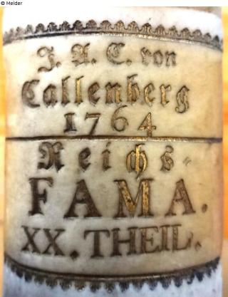 J. A. C. DE CALLENBERG (Johann Alexander Reichsgraf von Callenberg 12.3.1697 - 13.2.1776)goldene Schrift, drei Zeilen mit Jahreszahl