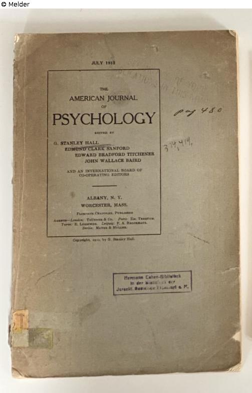 The American Journal of Psychology, Volume XXIII, No. 3, July 1912