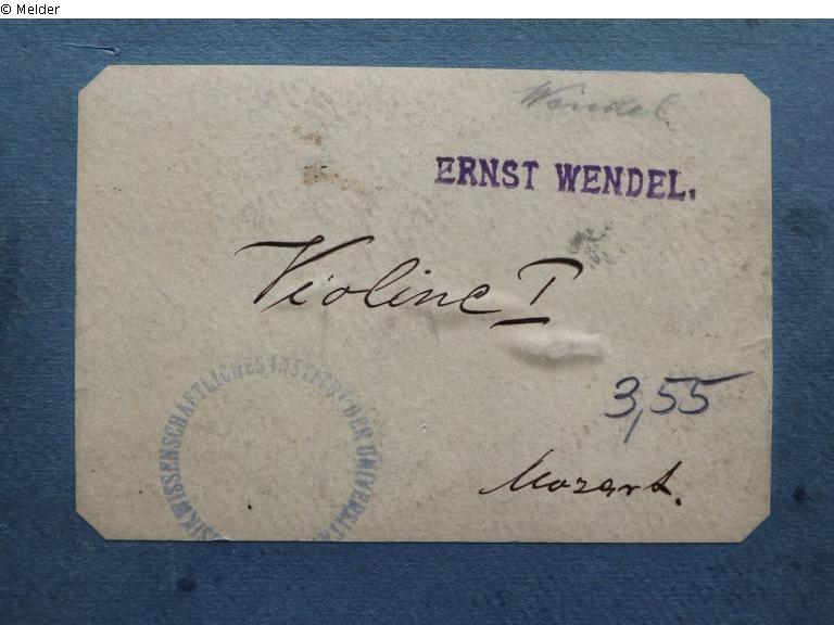 Stamp: "Ernst Wendel"; autograph: "E. Wendel"; circular stamp: "Musikwissenschaftliches Institut der Universität Köln"; stamp: "Inventar-Nr."; handwritten addition behind: "8,646";